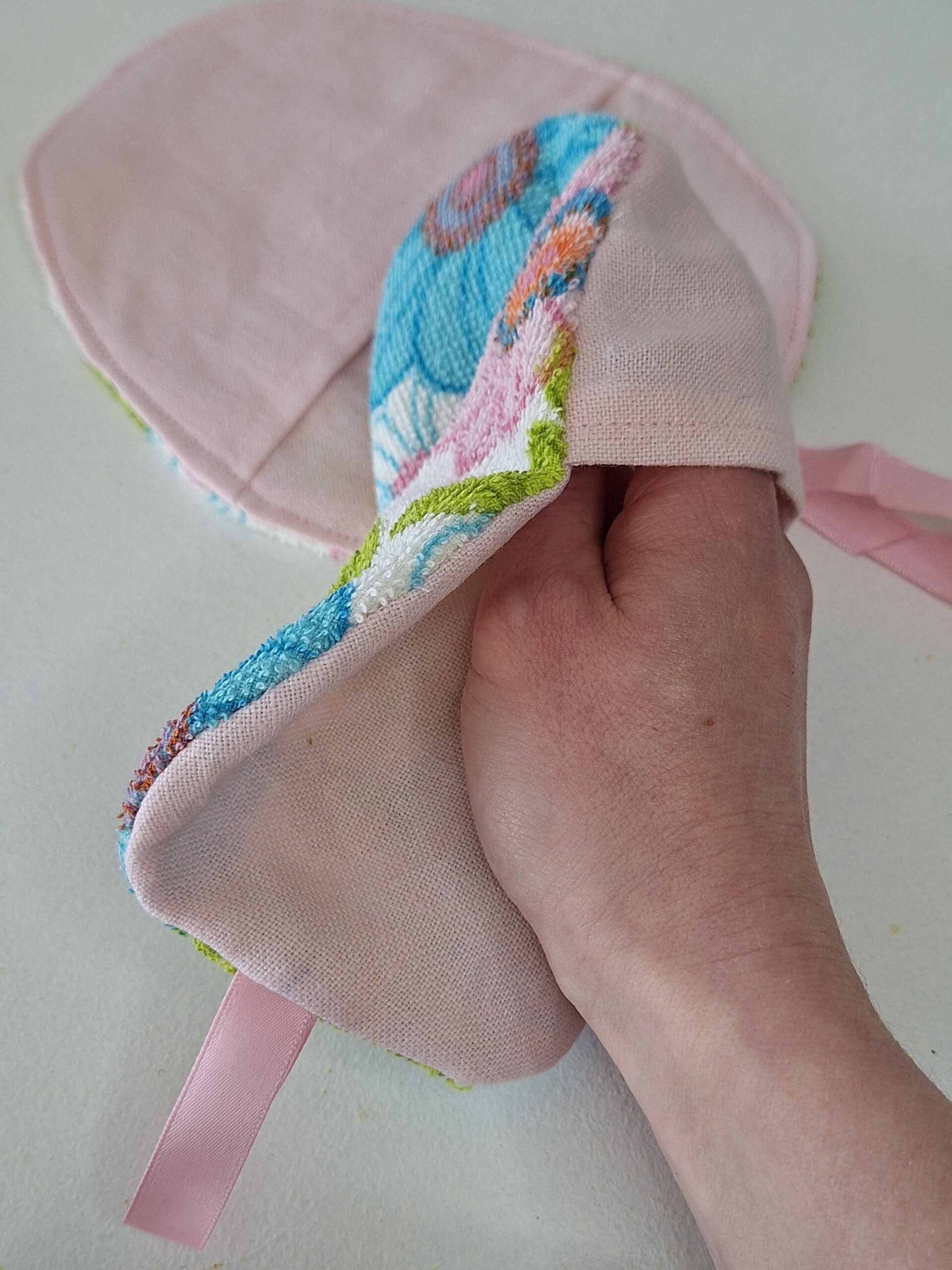 • eine weiche Baumwollseite und eine sanft reinigende Strukturseite