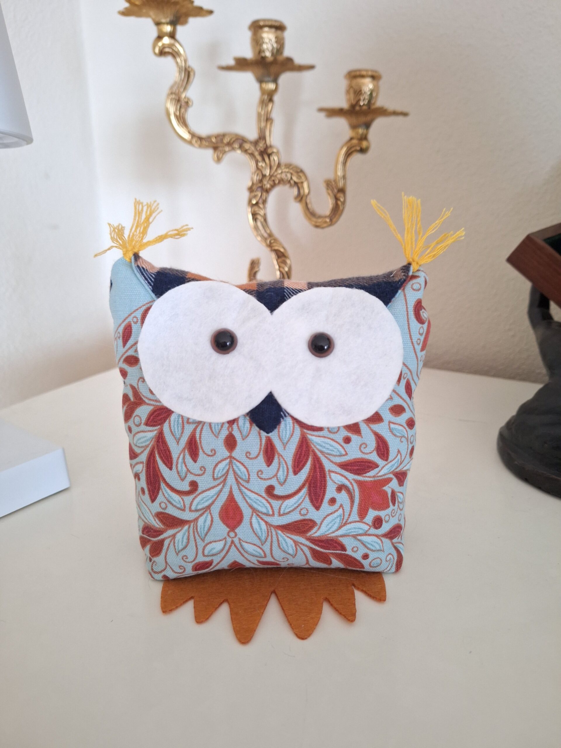 Handgenähte Deko-Eule aus Stoff – Symbol für Schutz und Weisheit